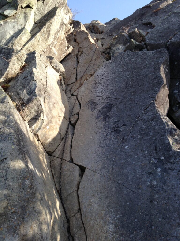 鎖を使いながら登るこの岩場は、乾徳山最大の見せ場。